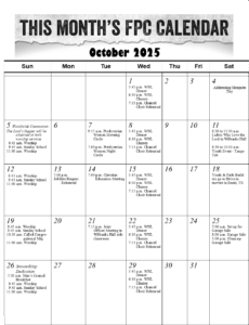 2025 September Calendar 2025 August 2024 NOVEMBER NL CalendarONLY 2024 OCTOBER NL Calendar 4 2024 September Calendar 2024 August Calendar 2024 JULY CALENDAR June 2024 Calendar Home EVENTS Fellowship Adult Education About News Contact FollowFollow Worship Sermon Audio Video Bulletins Music Education & Fellowship WNL Youth Children Adult Education About Staff History Contact Us 1028 S Betline Rd.Mesquite, TX 75149 972-285-5602 Copyright © FPC Mesquite 2026 | Web Design by Key Element Media